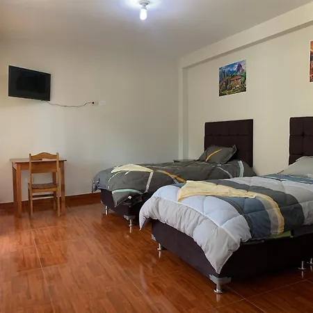 The kitchen amenities feature an electric kettle, provided in a dining area. The nearest bus stop is Huayllabamba, within a few blocks of the property.